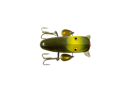 SPINNING SIZE • Vintage Makinen Tackle Company WonderLure Fishing Lure • FATIGUE GREEN BACK & STRIPES w/ YELLOW SIDES
