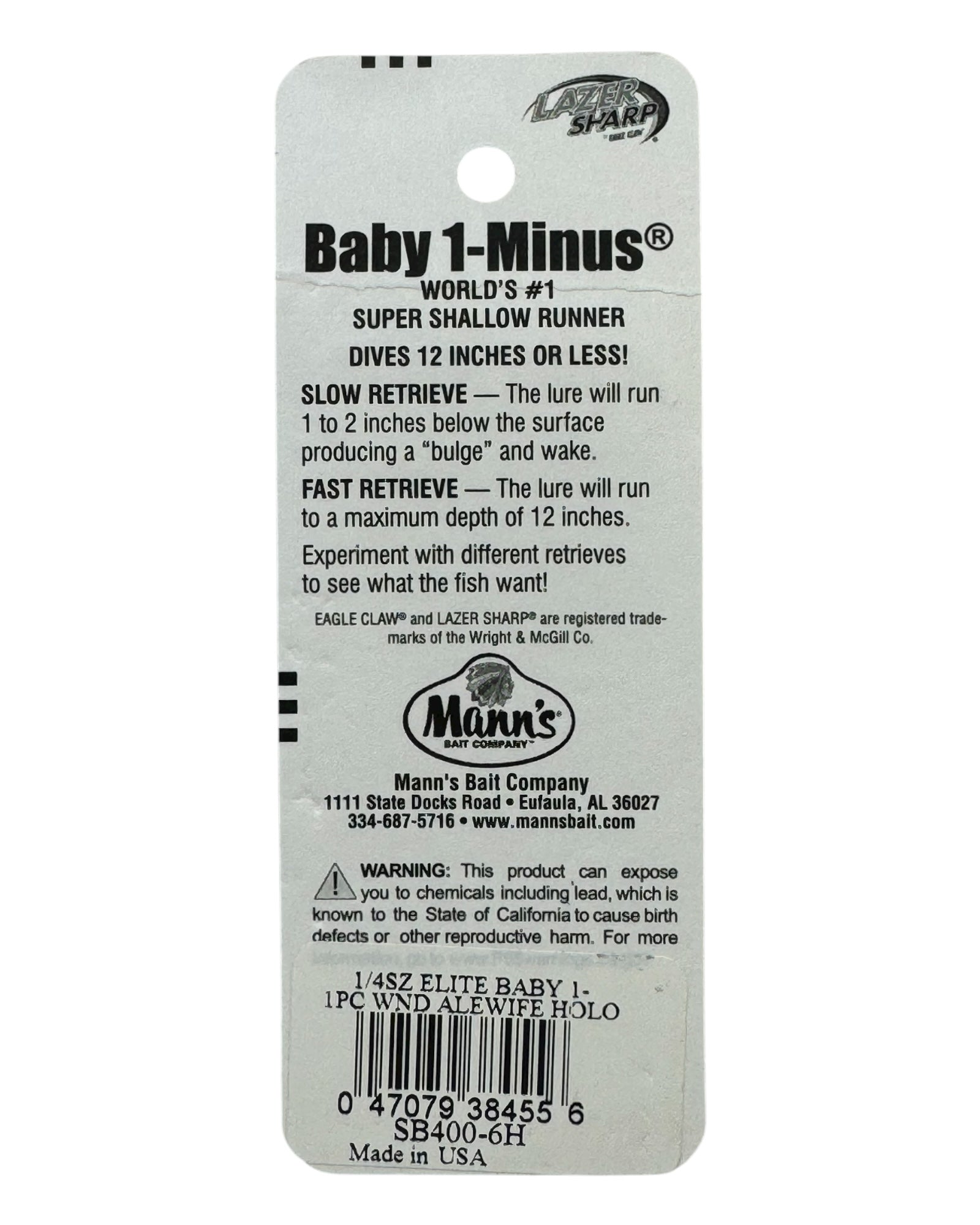 MADE IN USA • MANN'S BAIT COMPANY BABY 1- (ONE MINUS) ELITE FISHING LURE • SB400-6H WOUNDED ALEWIFE HOLOGRAPHIC