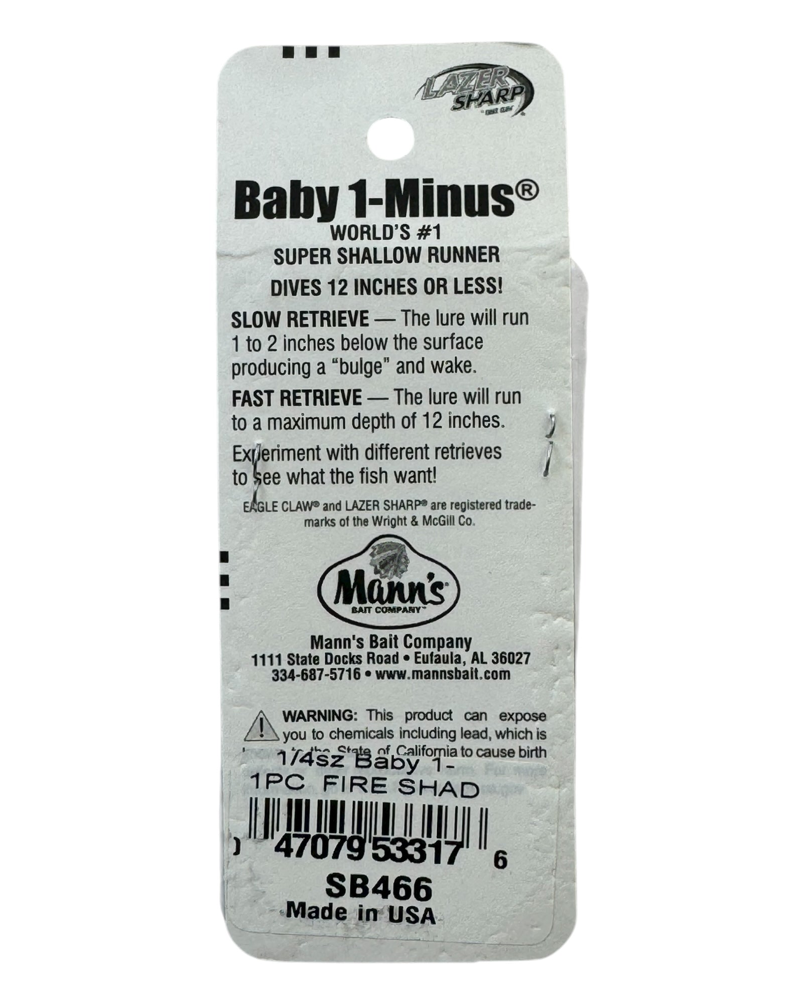 MADE IN USA • MANN'S BAIT COMPANY BABY 1- (ONE MINUS) ELITE FISHING LURE • SB466 FIRE SHAD