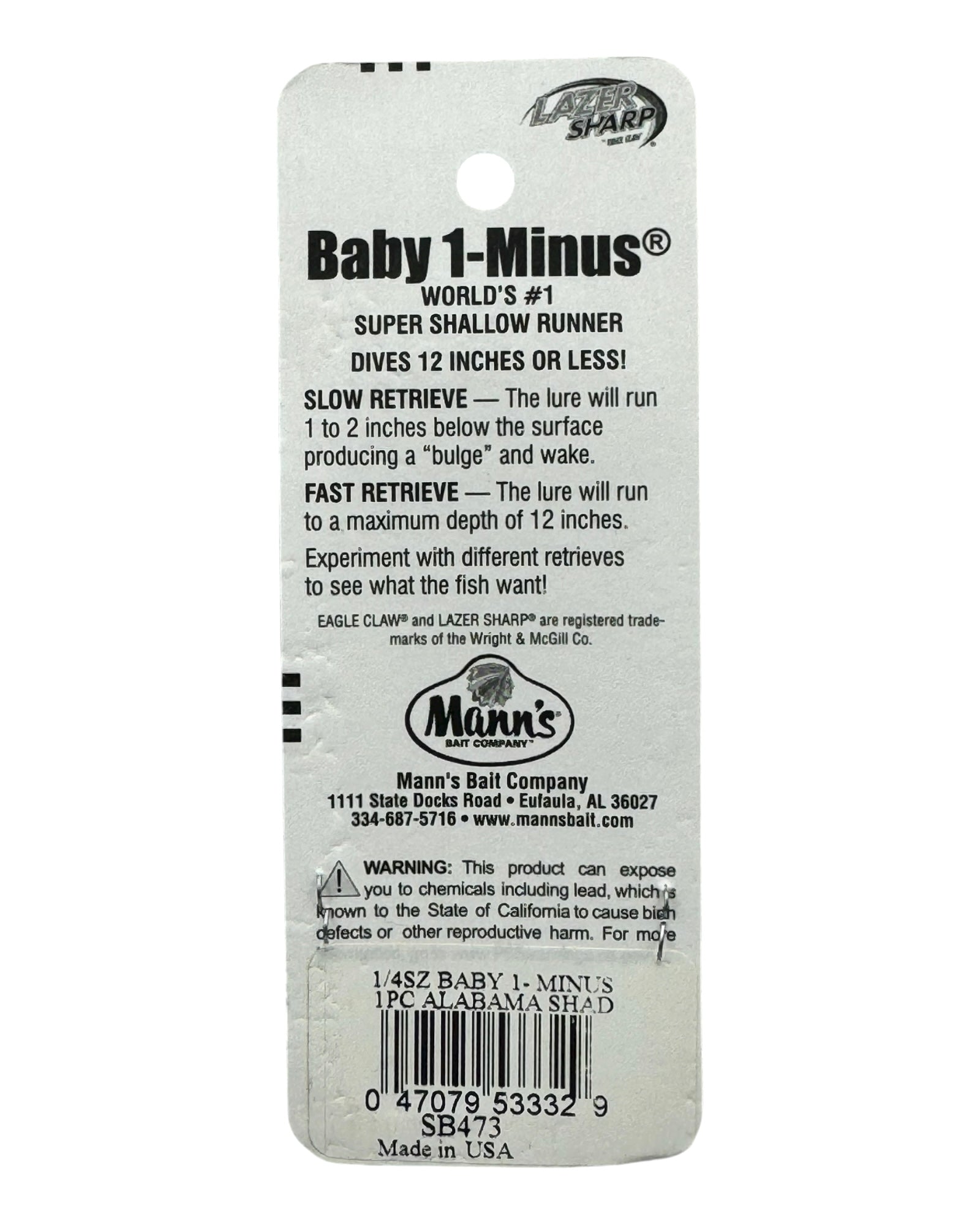 MADE IN USA • MANN'S BAIT COMPANY BABY 1- (ONE MINUS) ELITE FISHING LURE • SB473 ALABAMA SHAD