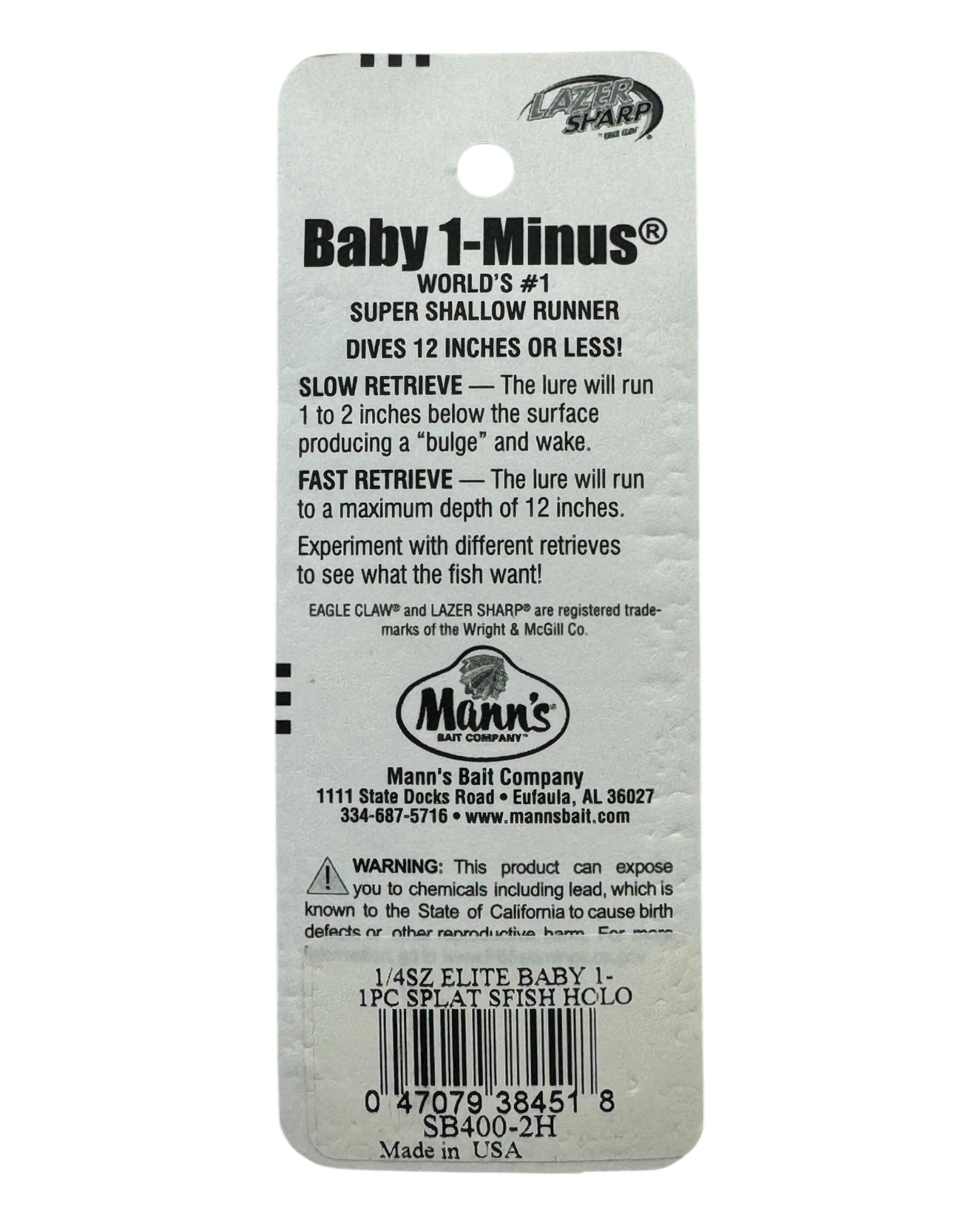 MADE IN USA • MANN'S BAIT COMPANY BABY 1- (ONE MINUS) ELITE FISHING LURE • SB400-2H SPLATTERBACK SUNFISH HOLOGRAPHIC