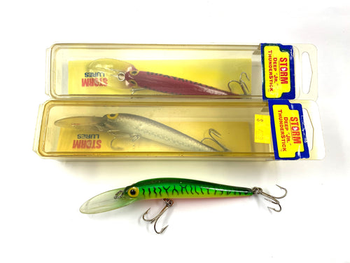 Lot of 3 STORM Deep Jr Thundersticks — PURPLE SCALE, PURPLE TIGER, GREEN TIGER
