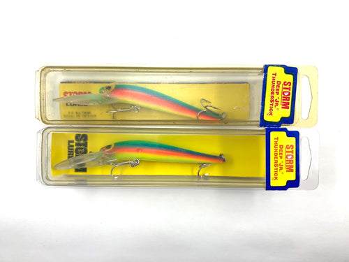 Lot of 2 STORM DJ68 Deep Jr Thunderstick Fishing Lures — FLUORESCENT RAINBOW