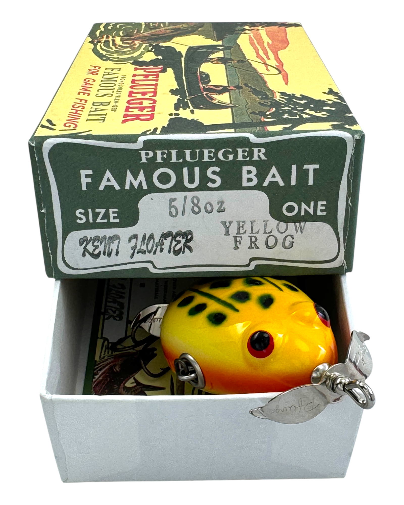 PFLUEGER KENT FROG FLOATER FISHING LURE + BOX in YELLOW FROG