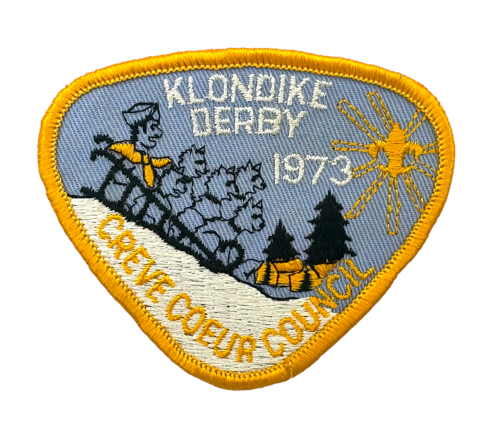 BOY SCOUTS of AMERICA CREVE COEUR COUNCIL PATCH • KLONDIKE DERBY 1973