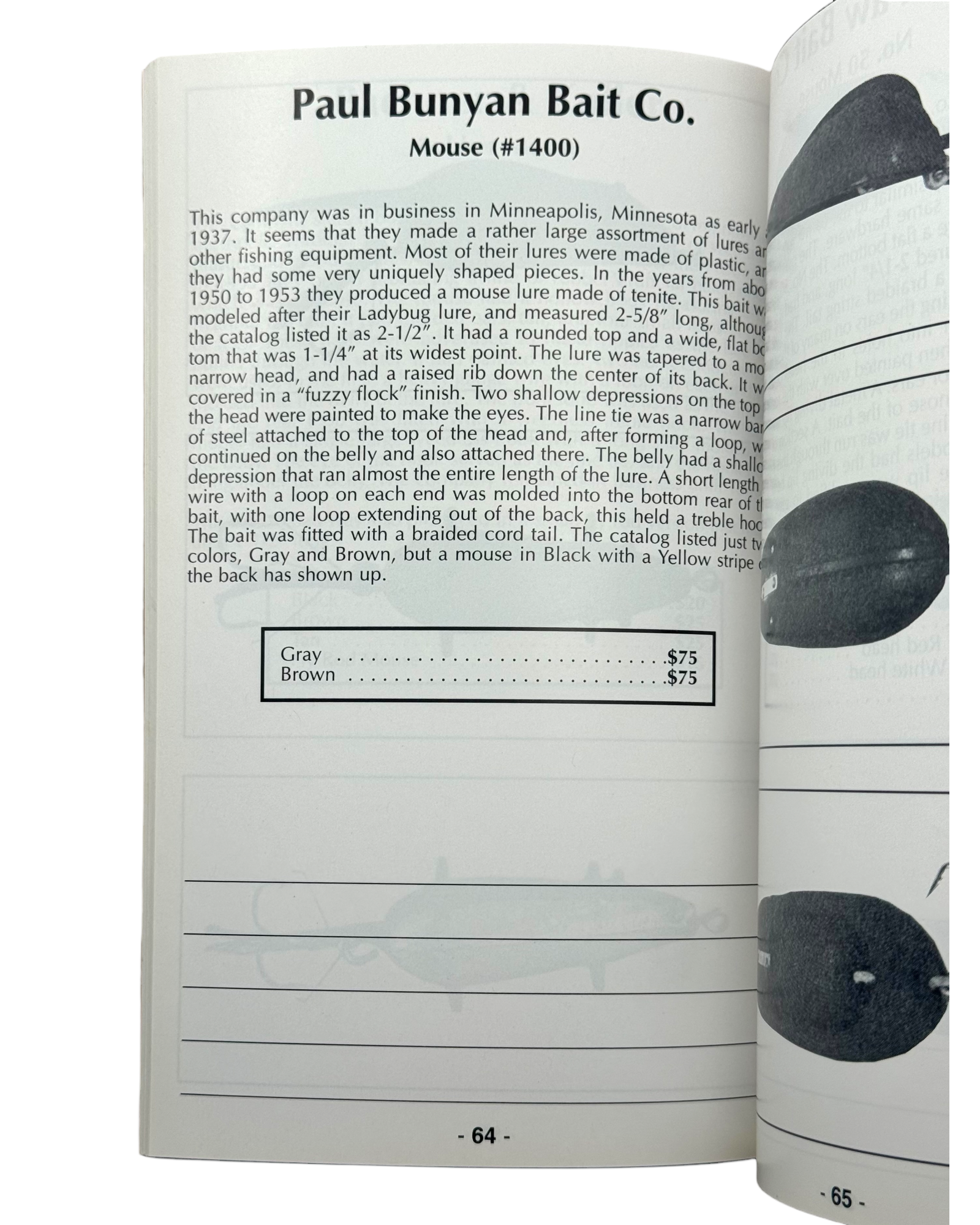 - "A Guide to Identification and Valuation of Antique Mouse Fishing Lures"