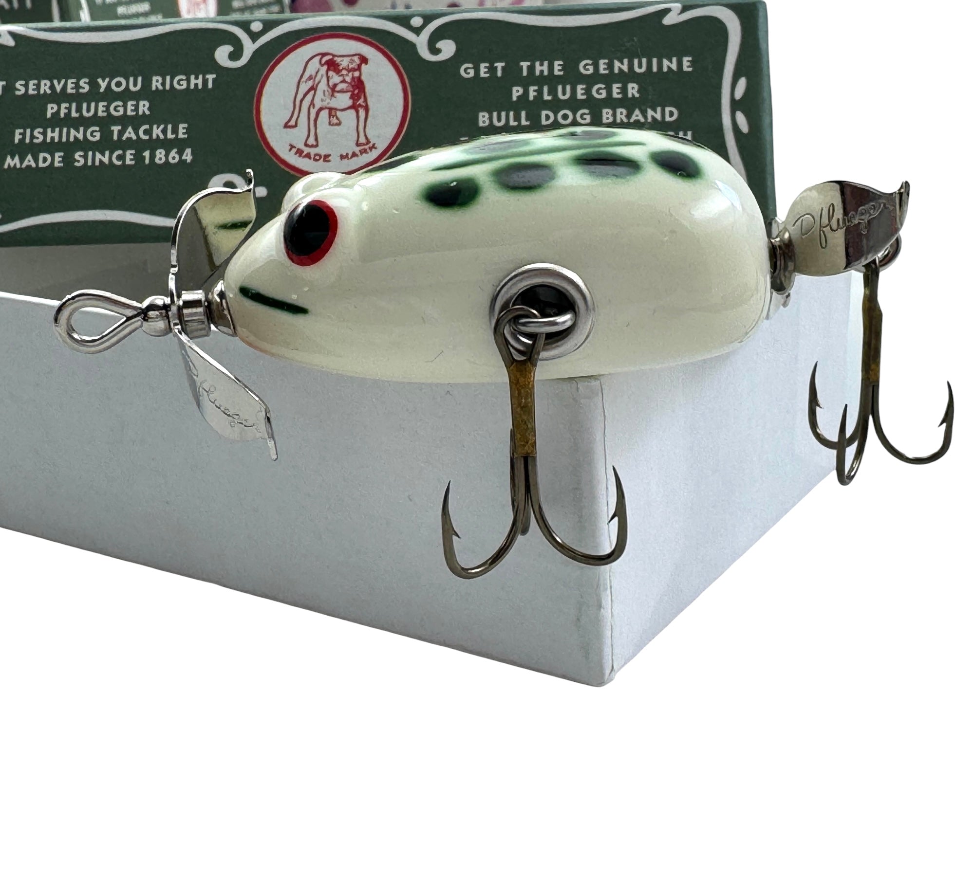 PFLUEGER KENT FROG FISHING LURE. CANOE BOX. WHITE ENAMEL D