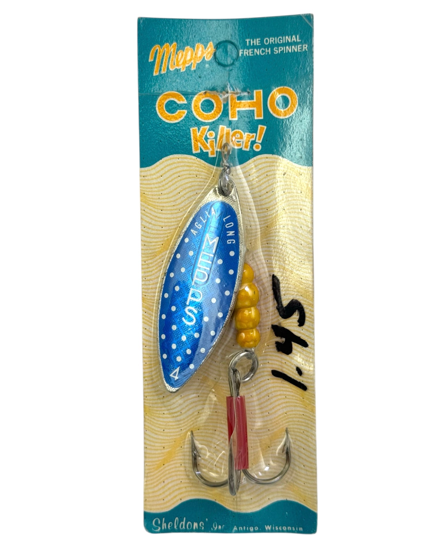 SHELDON'S MEPP'S COHO KILLER SPINNERBAIT • SIZE 4 AGLIA LONG BLUE DOT (our description)